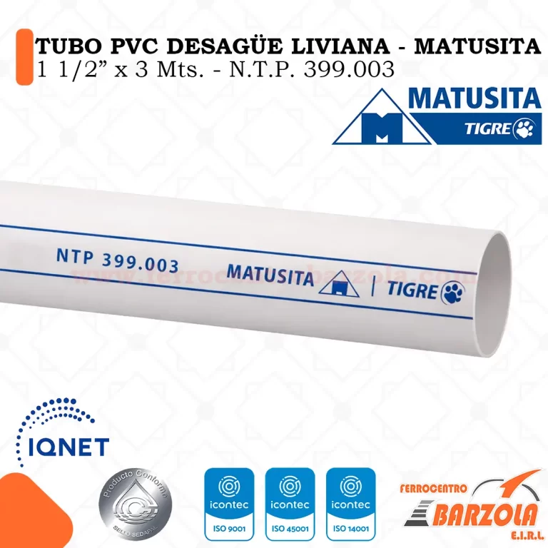Tubo PVC Desagüe Clase Liviana 1 1/2″ – MATUSITA
