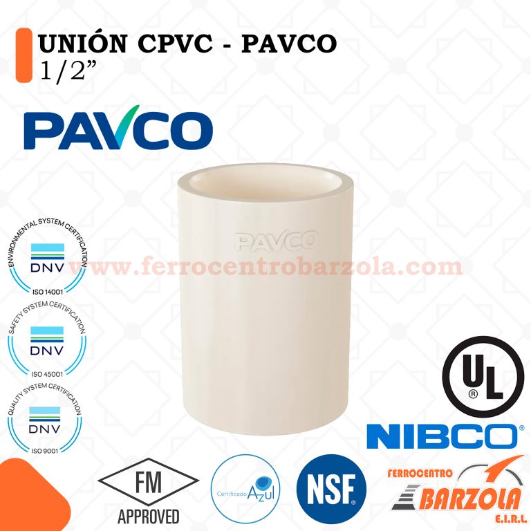 Unión CPVC PAVCO fabricada en policloruro de vinilo clorado de alta resistencia, ideal para unir tuberías en sistemas de agua fría y caliente. Ofrece excelente desempeño frente a la presión, altas temperaturas y corrosión. Garantiza conexiones seguras, duraderas y fáciles de instalar en proyectos sanitarios residenciales, comerciales e industriales.
