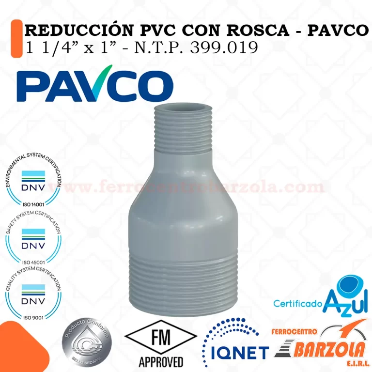 Reducción PVC con rosca PAVCO: accesorio roscado de alta calidad para adaptar y reducir diámetros en redes de agua potable y sistemas a presión. Fabricado en PVC-U virgen, ofrece resistencia a la corrosión, hermeticidad con sellador en rosca y fácil instalación. Ideal para bombas, medidores y válvulas; perfecta para obras residenciales, comerciales e industriales. Disponibilidad y soporte técnico local. Garantía y fichas técnicas disponibles. hoy