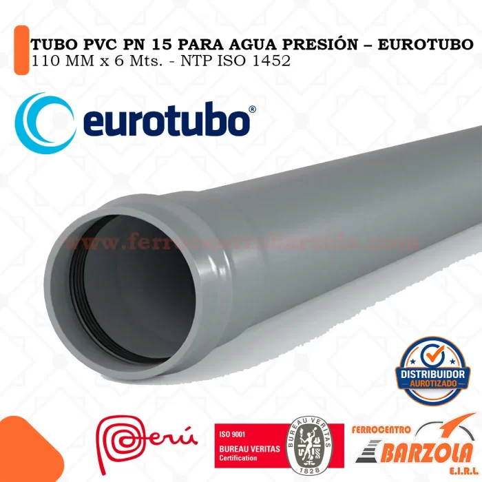 Tubo PVC-UF PN15 110MM x 6m Agua Presión – EUROTUBO