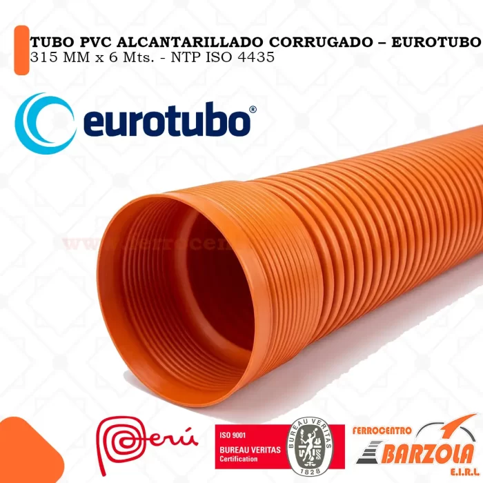 Tubo PVC Alcantarillado Corrugado 315mm x 6mts – EUROTUBO