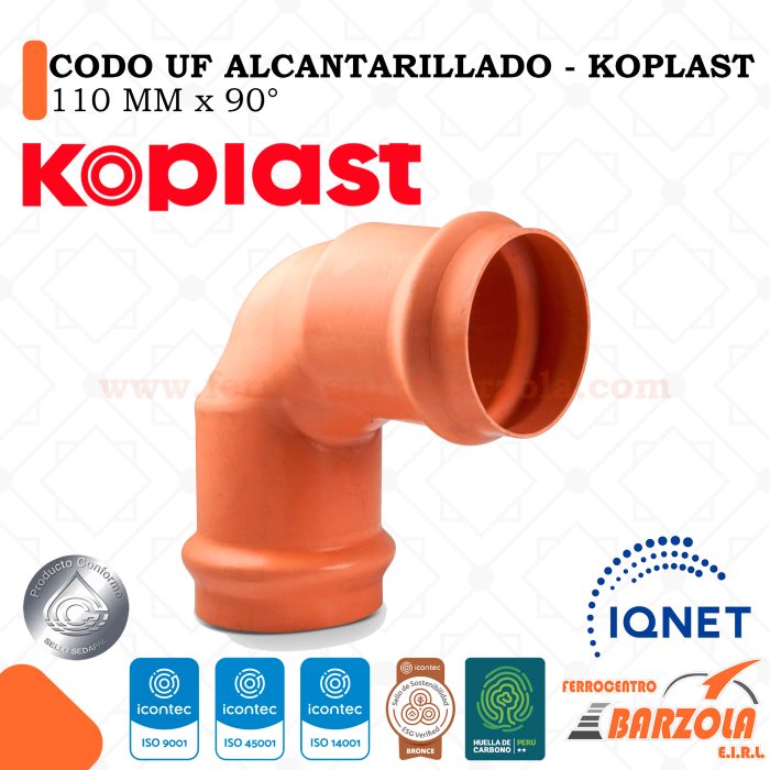 Codo UF Alcantarillado 110mm x 90° – KOPLAST