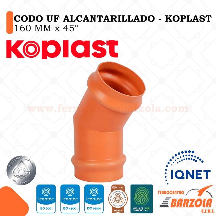 Codo UF Alcantarillado 160 mm x 45° – KOPLAST
