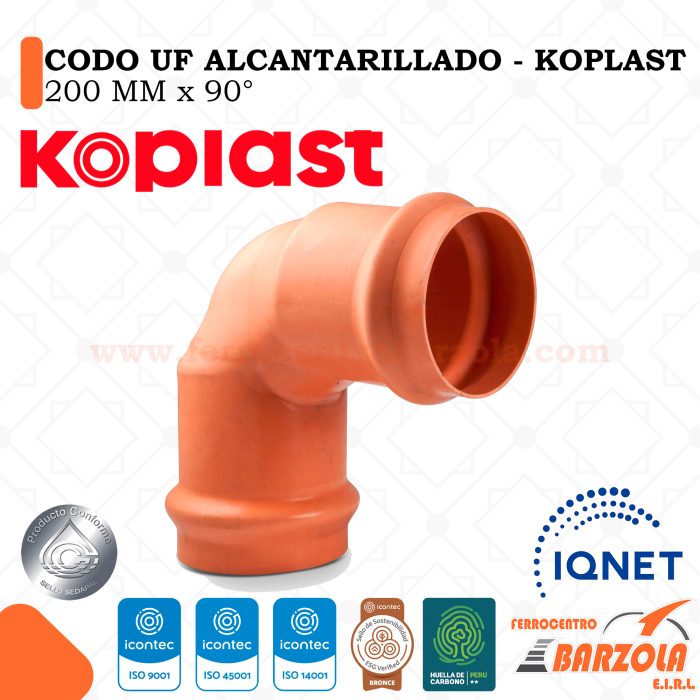 Codo UF Alcantarillado 200mm x 90° – KOPLAST