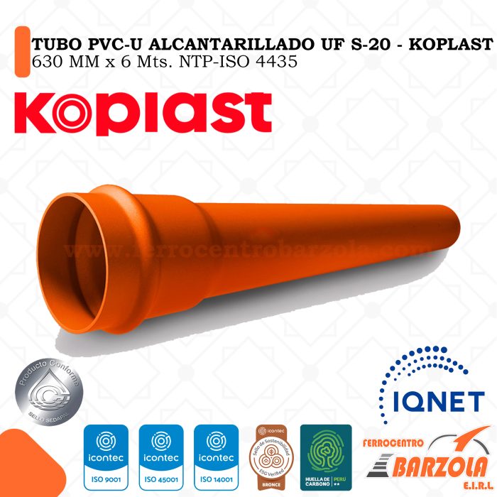 Tubo PVC-U Alcantarillado UF S-20 630mm x 6mts – KOPLAST