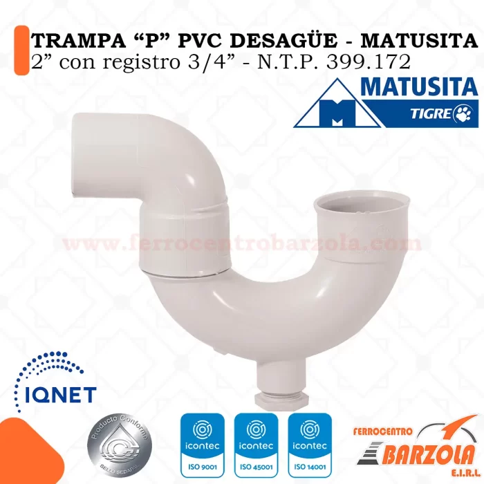 Trampa «P» PVC Desagüe 2″ con Registro 3/4″ – MATUSITA