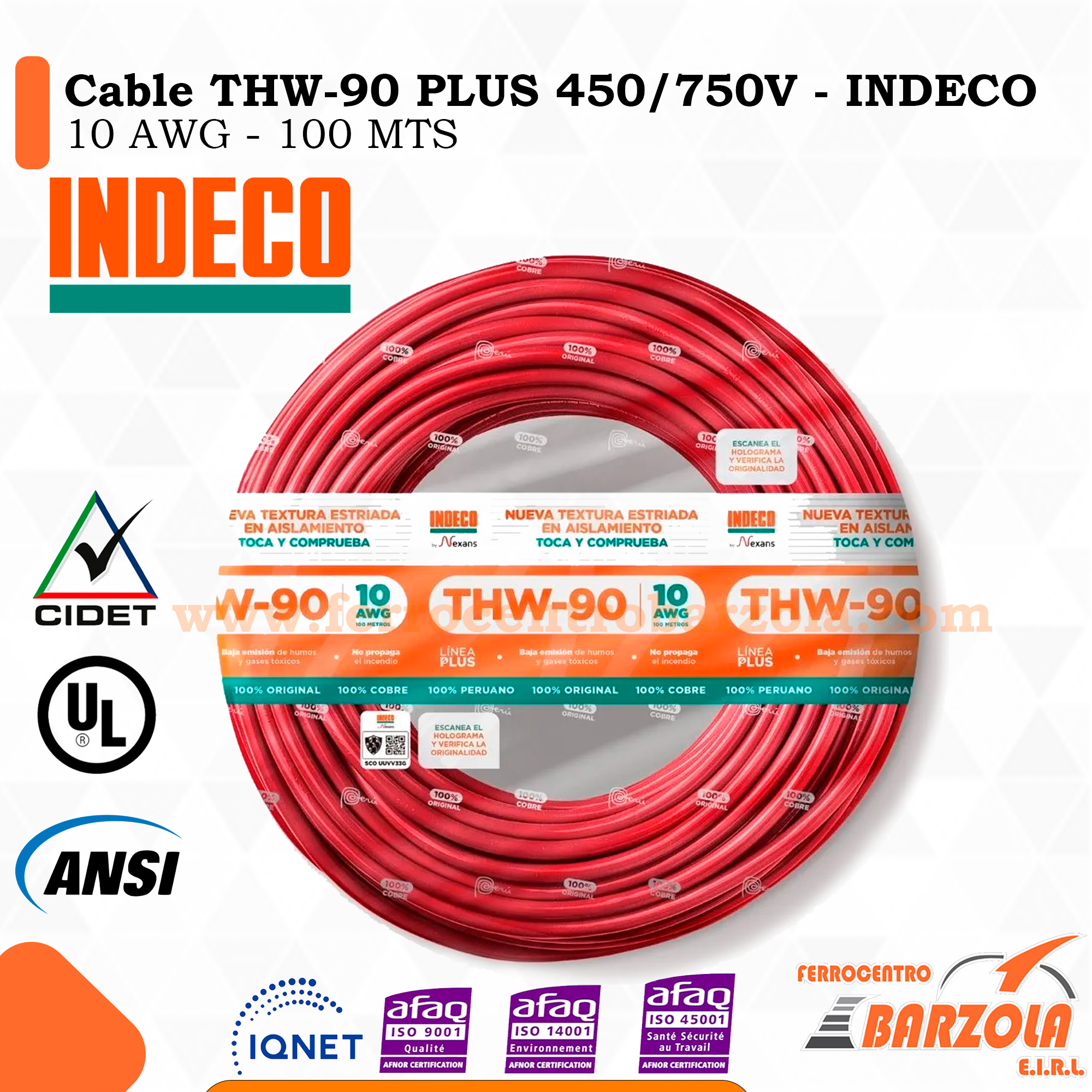 Cable THW-90 PLUS 450/750 V 10 AWG ROJO – INDECO
