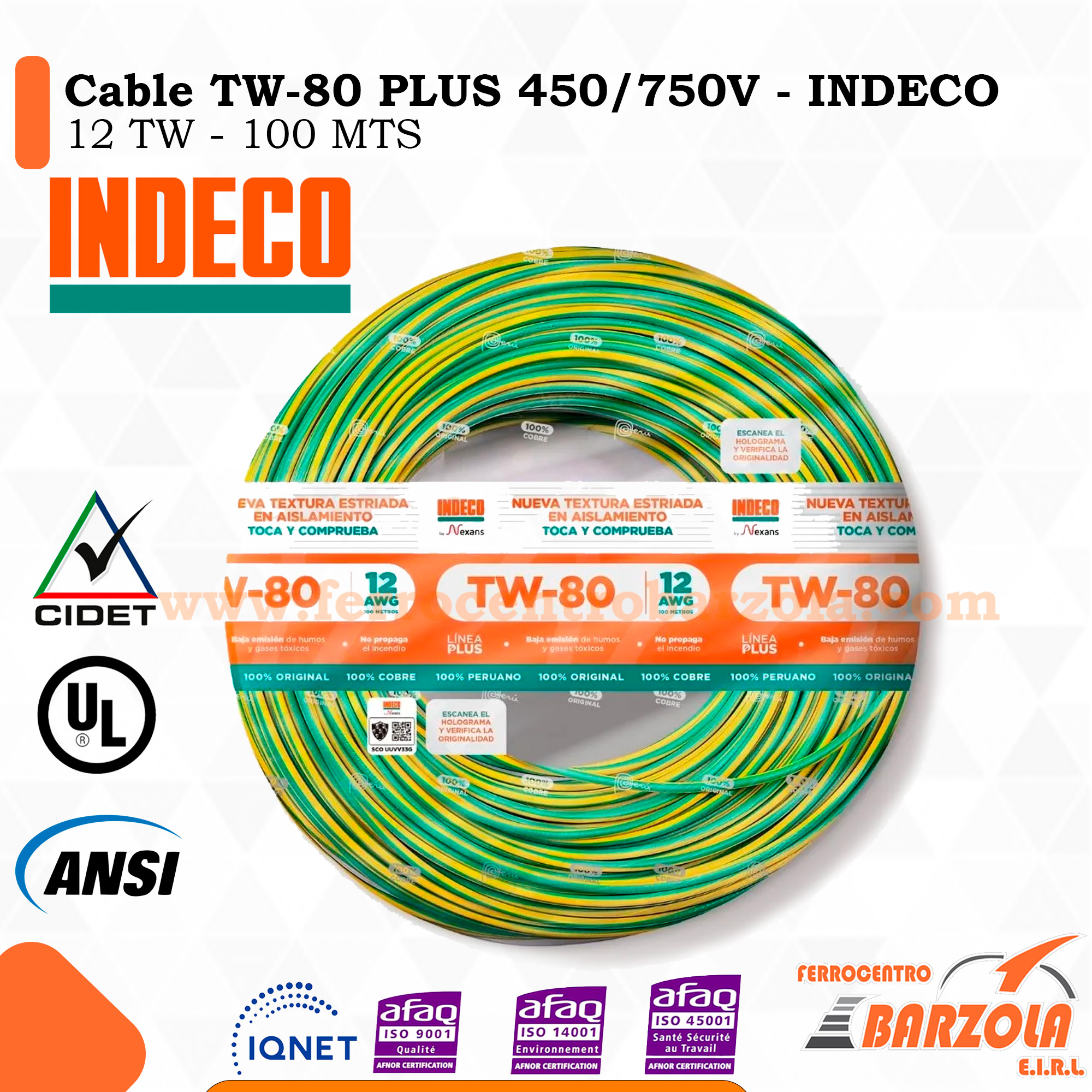 Cable TW-80 PLUS 450/750 V 12 AWG VERDE/AMARILLO – INDECO
