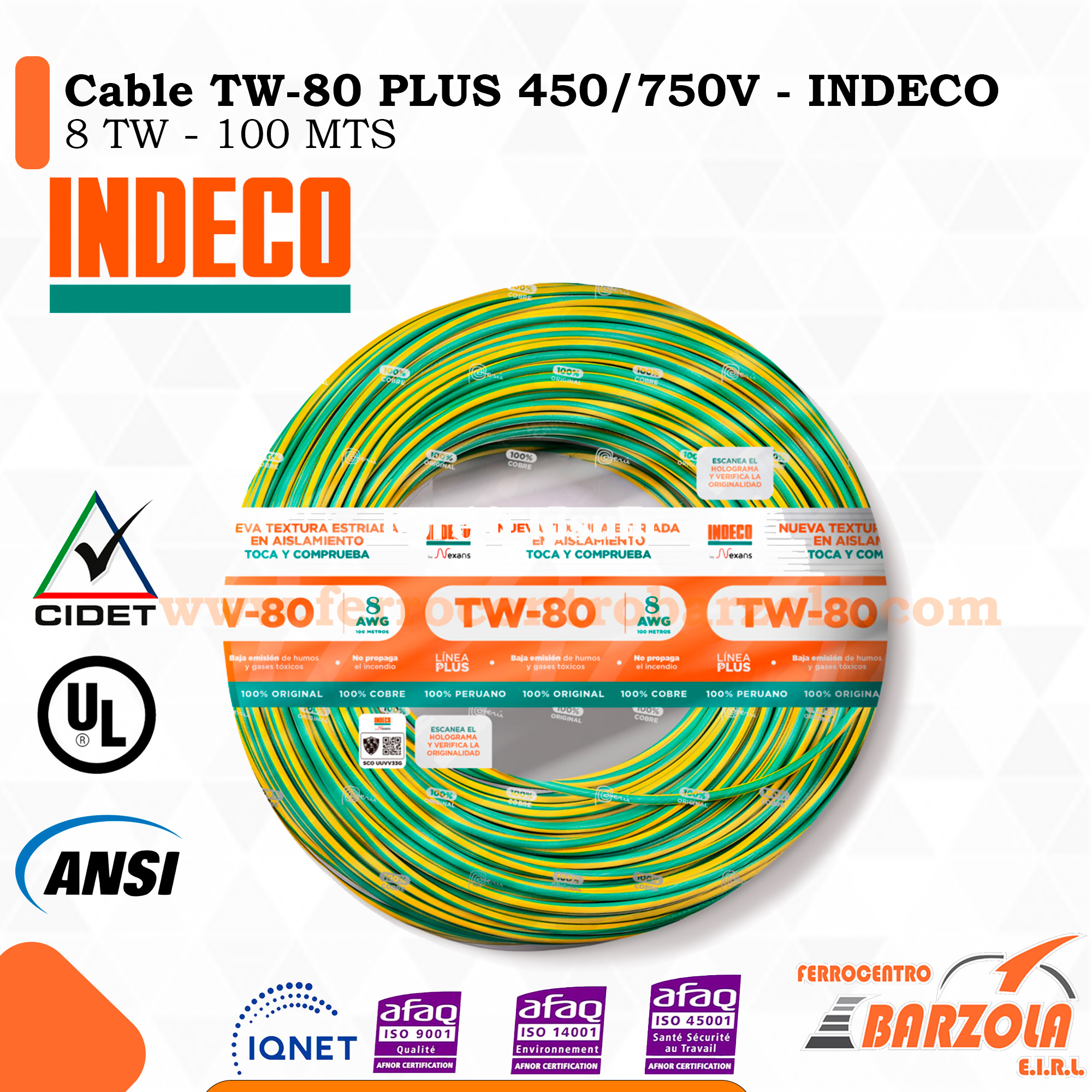 - Marca INDECO: calidad reconocida en el mercado de conductores eléctricos.