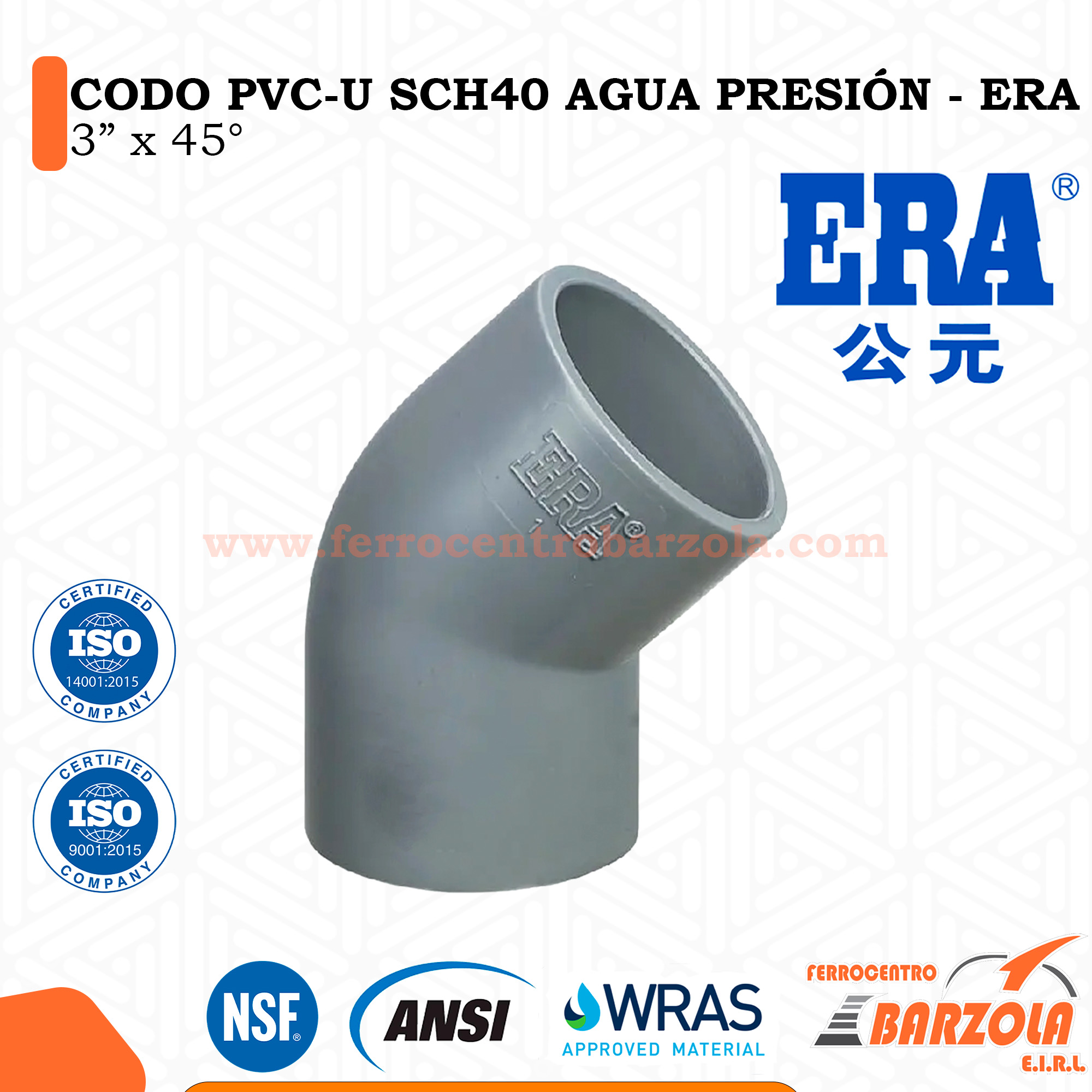 Codo PVC-U SCH40 Agua Presión 3″ x 45° – ERA