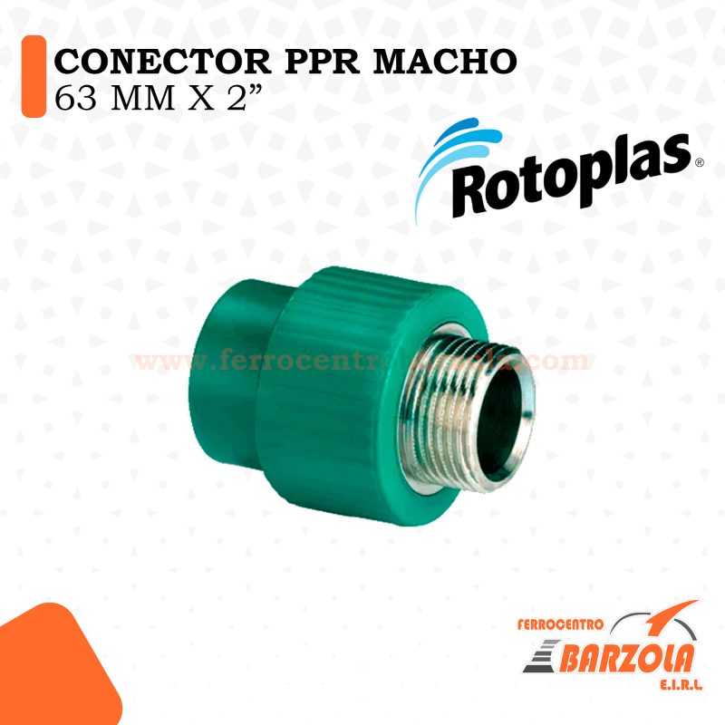 "Conector PPR Hembra 63 mm x 2" ROTOPLAS, ideal para instalaciones de agua fría y caliente. Fabricado en polipropileno de alta calidad con rosca metálica resistente a la corrosión, asegura una conexión duradera, segura y libre de fugas mediante termofusión. Apto para uso doméstico, industrial y sanitario"