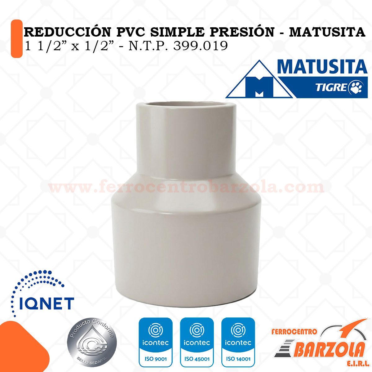 Reducción Simple Presión 1 1/2″ x 1/2″ – MATUSITA