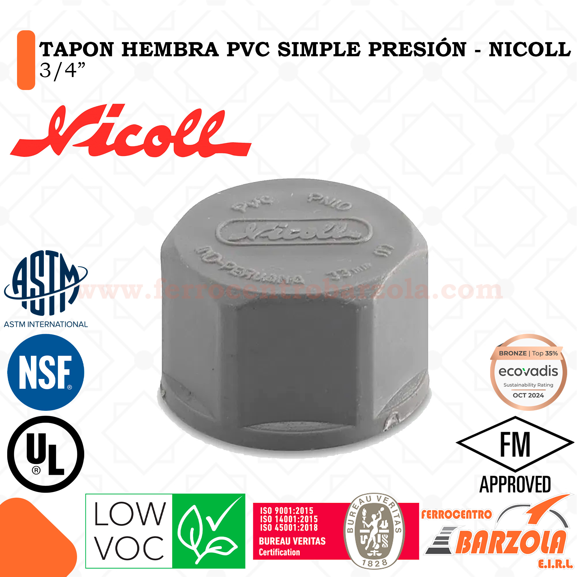 Tapón Hembra PVC Simple Presión 3/4″ – NICOLL