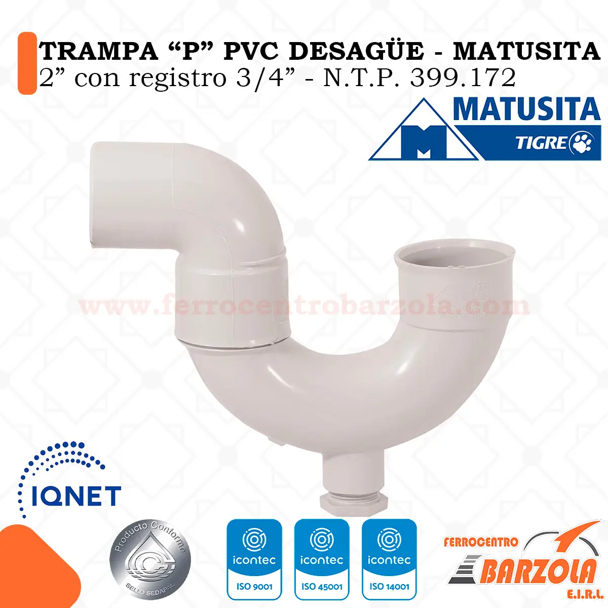 Trampa «P» PVC Desagüe 2″ con Registro 3/4″ – MATUSITA