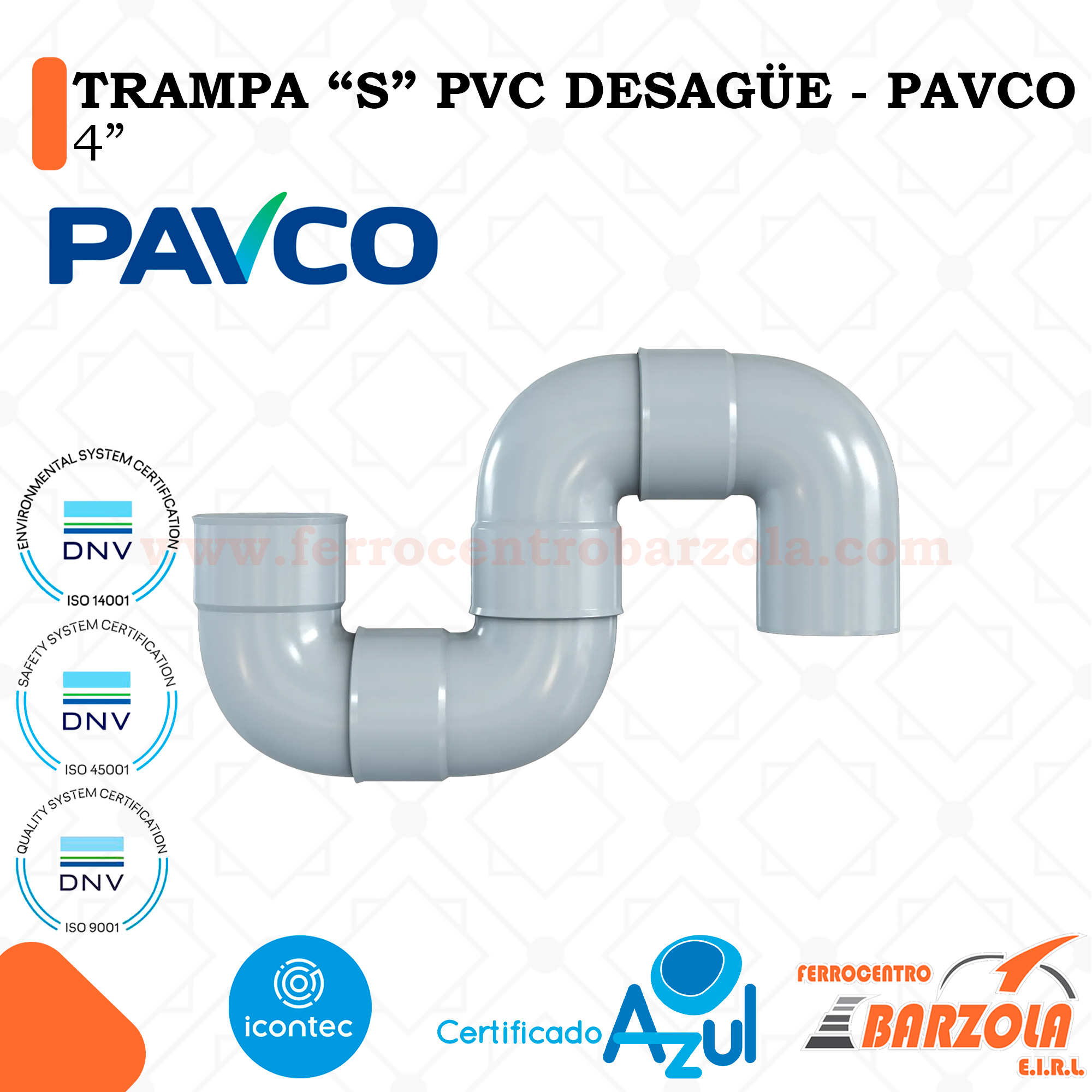 La Trampa S PVC Desagüe PAVCO está diseñada para sistemas sanitarios en lavatorios y lavaderos, creando un sello hidráulico que impide el retorno de malos olores y gases del desagüe. Fabricada en PVC sanitario de alta resistencia, ofrece durabilidad, resistencia a la corrosión y bajo mantenimiento. Su instalación por embone con adhesivo garantiza un sellado hermético y confiable en proyectos residenciales y comerciales.