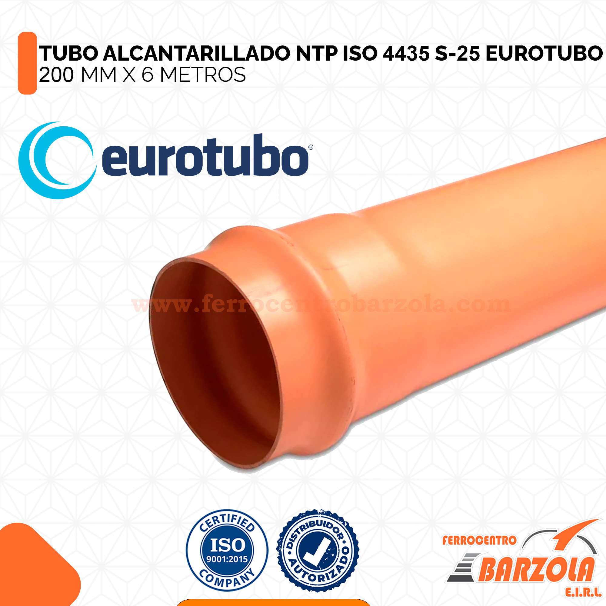 Tubo Alcantarillado NTP ISO 4435 S-25 200 mm x 6 m – EUROTUBO