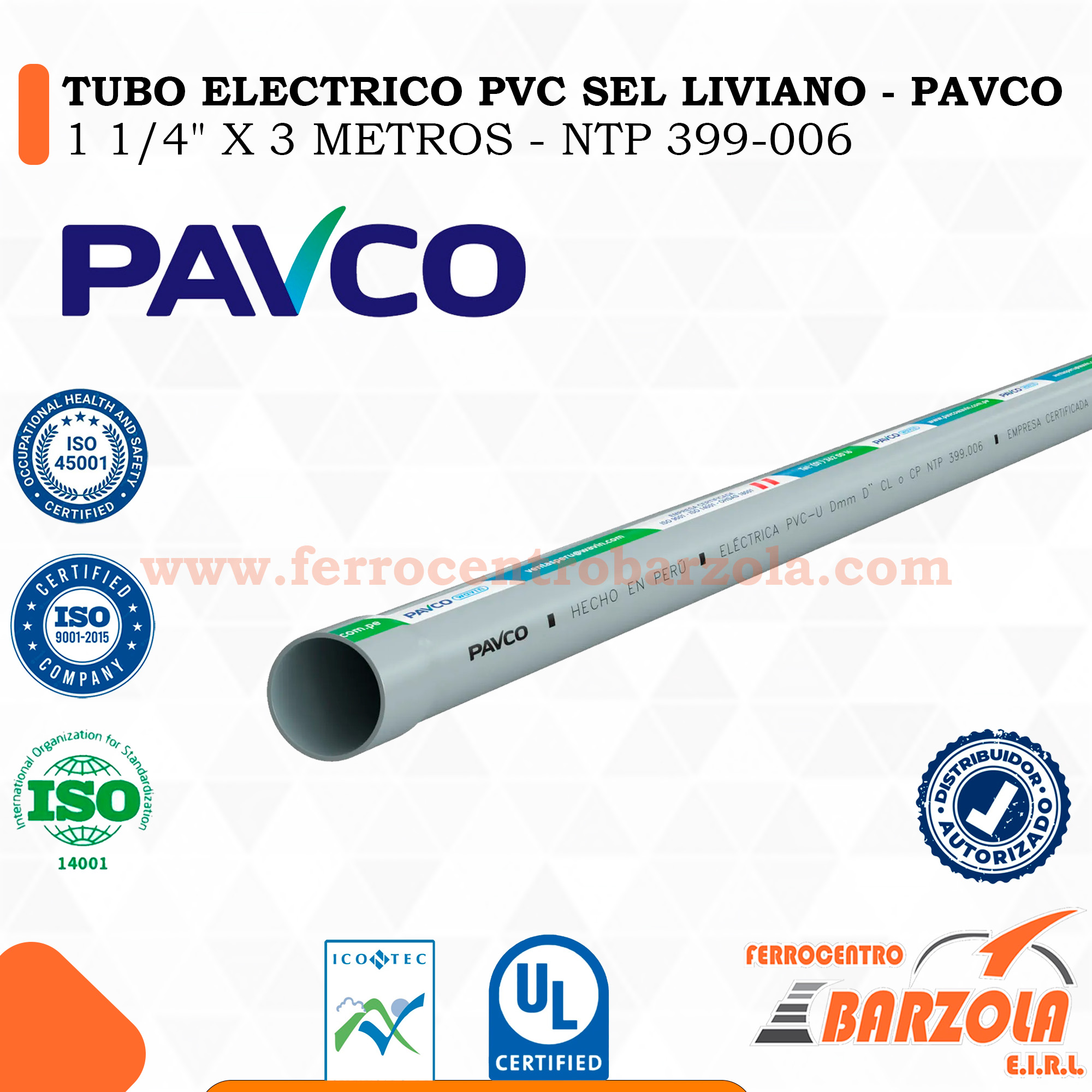 TUBO ELÉCTRICO PVC SEL LIVIANO – NTP 399.006 – PAVCO