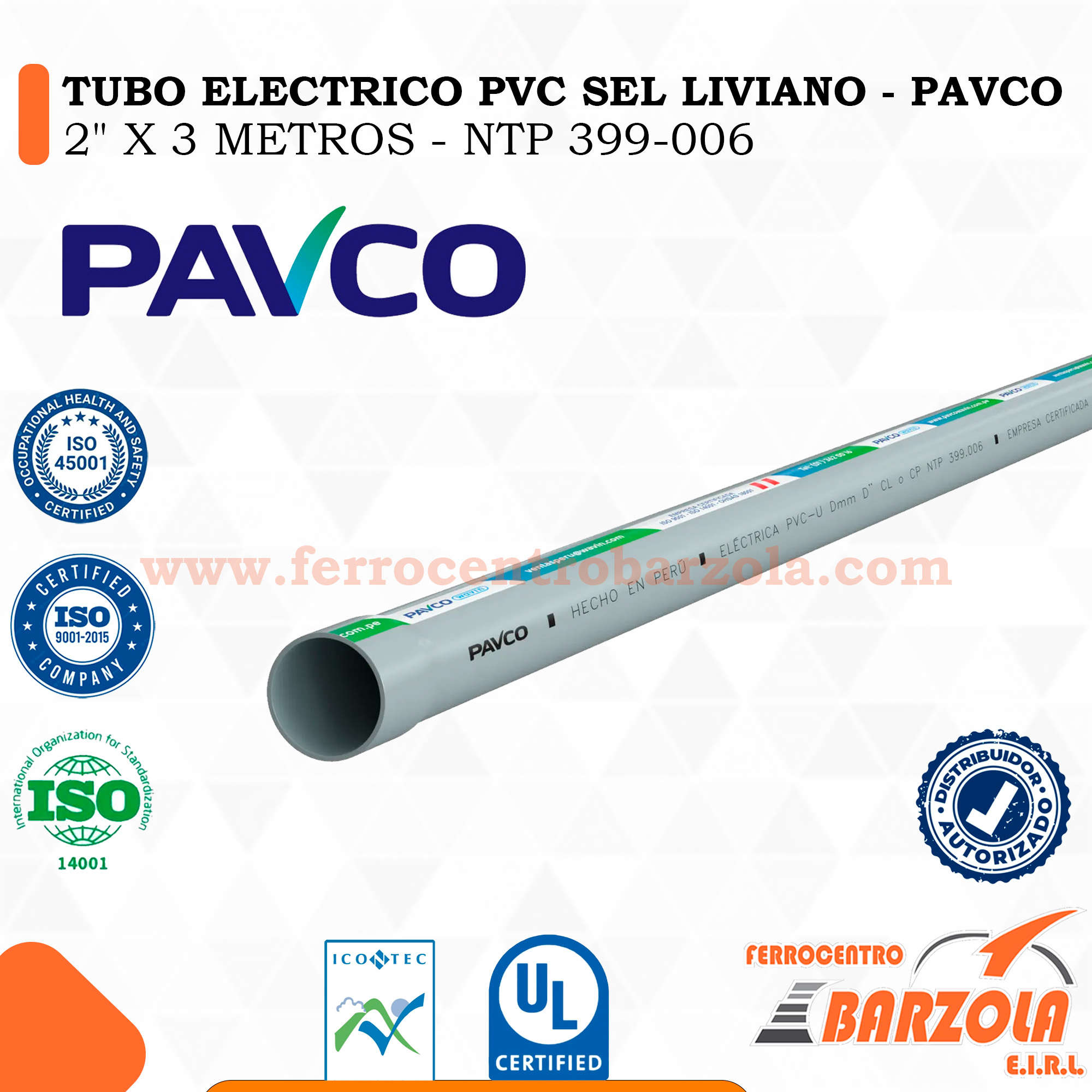 TUBO ELÉCTRICO PVC SEL LIVIANO – NTP 399.006 – PAVCO