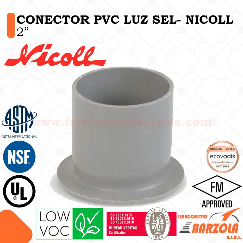 Conector PVC Luz SEL NICOLL diseñado para unir tuberías conduit en instalaciones eléctricas residenciales, comerciales e industriales. Fabricado en PVC de alta resistencia, ofrece excelente durabilidad, firmeza y protección contra la humedad y la corrosión. Garantiza una conexión segura y estable, facilitando una instalación rápida, práctica y confiable en todo tipo de proyectos eléctricos.