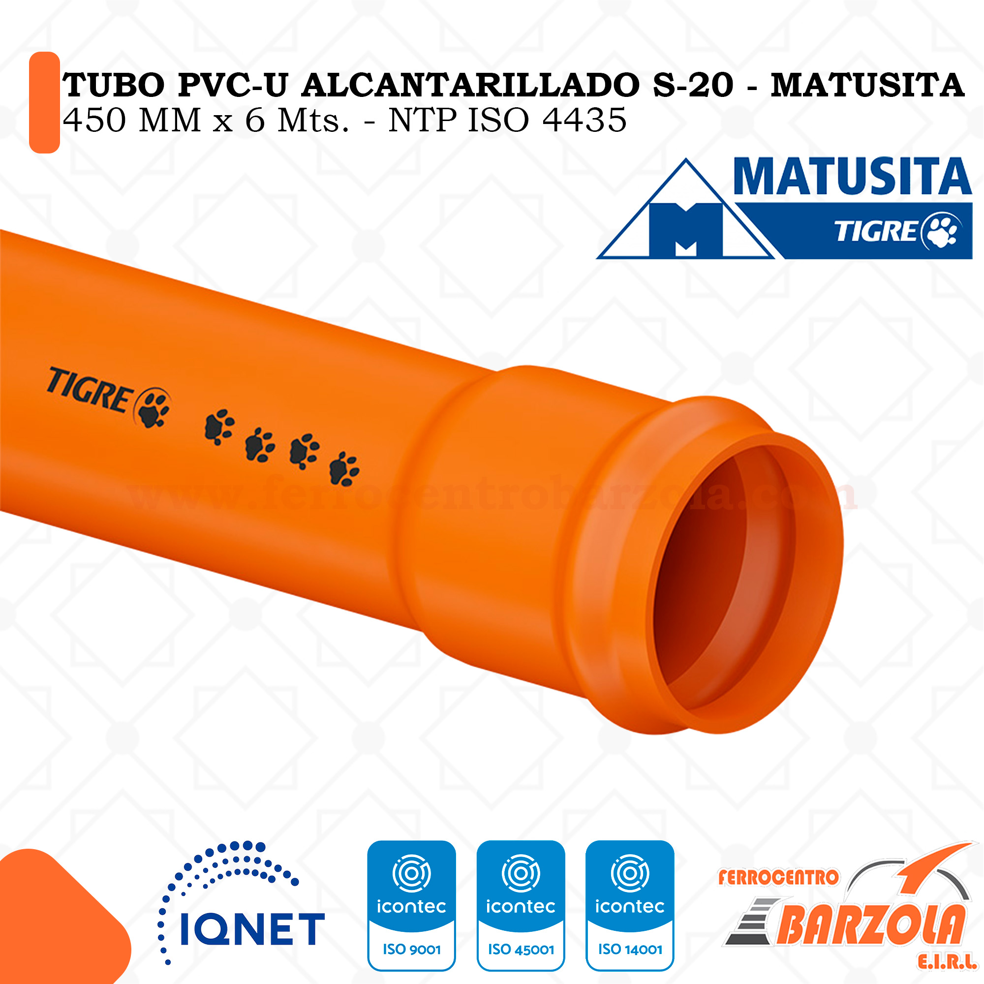 Tubo PVC-U Alcantarillado 450mm x 6mts S-20 – MATUSITA