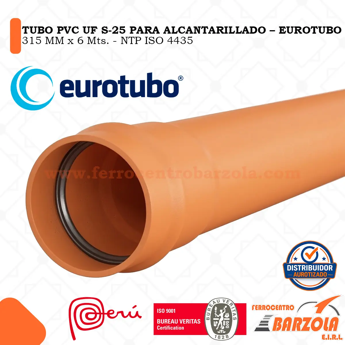 Tubo PVC UF S-25 Alcantarillado 315 MM x 6 Mts – EUROTUBO