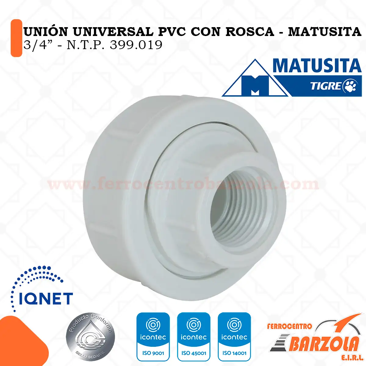 Unión Universal PVC Con Rosca 3/4″ – MATUSITA